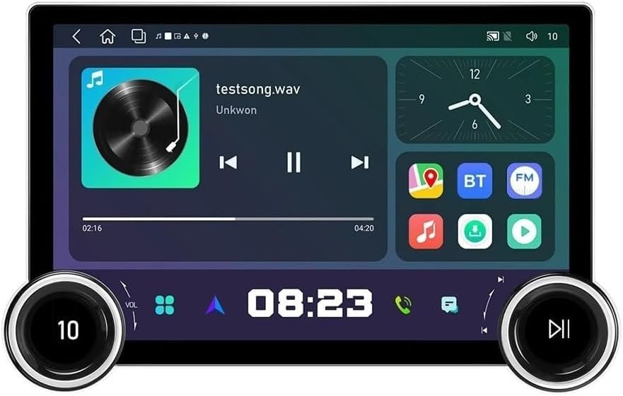 شاشة 10 بوصة أندرويد + CarPlay — 2GB RAM / 32GB،” تحكّم ذكي في الملاحة والموسيقى والمكالمات بلمسة واحدة، مع مقابض تحكّم جانبية Dual Knobs وصوت أقوى بفضل DSP.