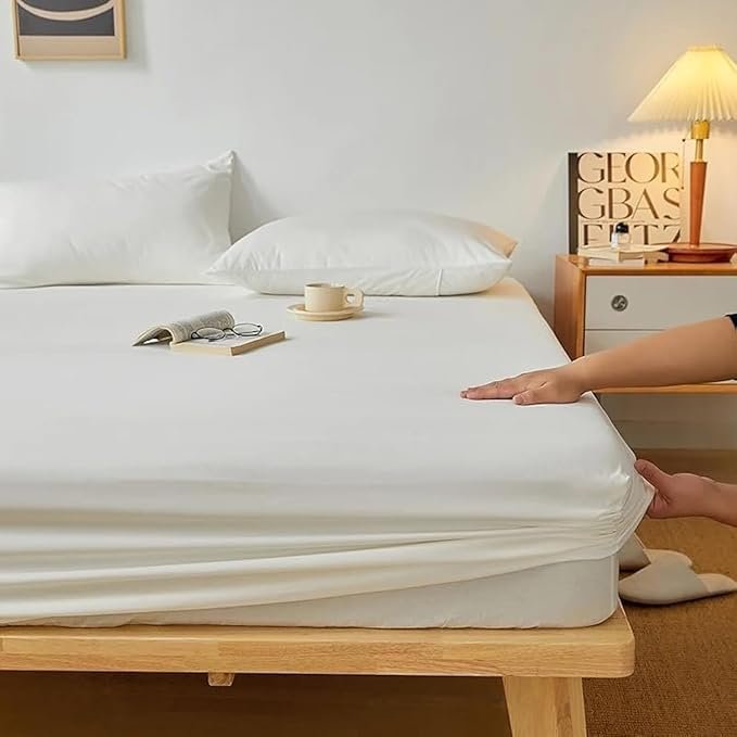 + Free Shipping– 🛏️✨ طقم ملاية أوف وايت بأستك مع 2 كيس خدادية، راحة وأناقة في غرفتك! 🤍👌 مصمم ليناسب سريرك بثبات ونعومة فاخرة 😍💤.