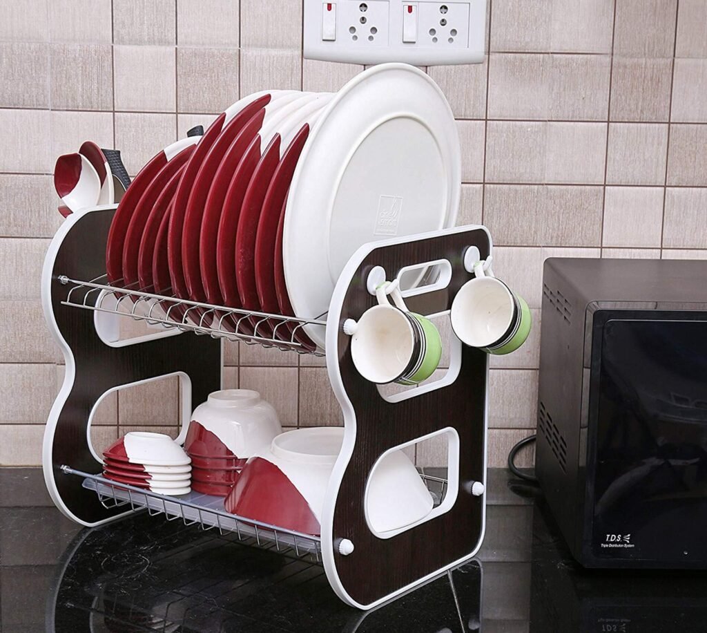 + Free Shipping🍽️✨ مطبقيّة استيل × خشب – 2 دور… أناقة وتنظيم في قلب مطبخك!
